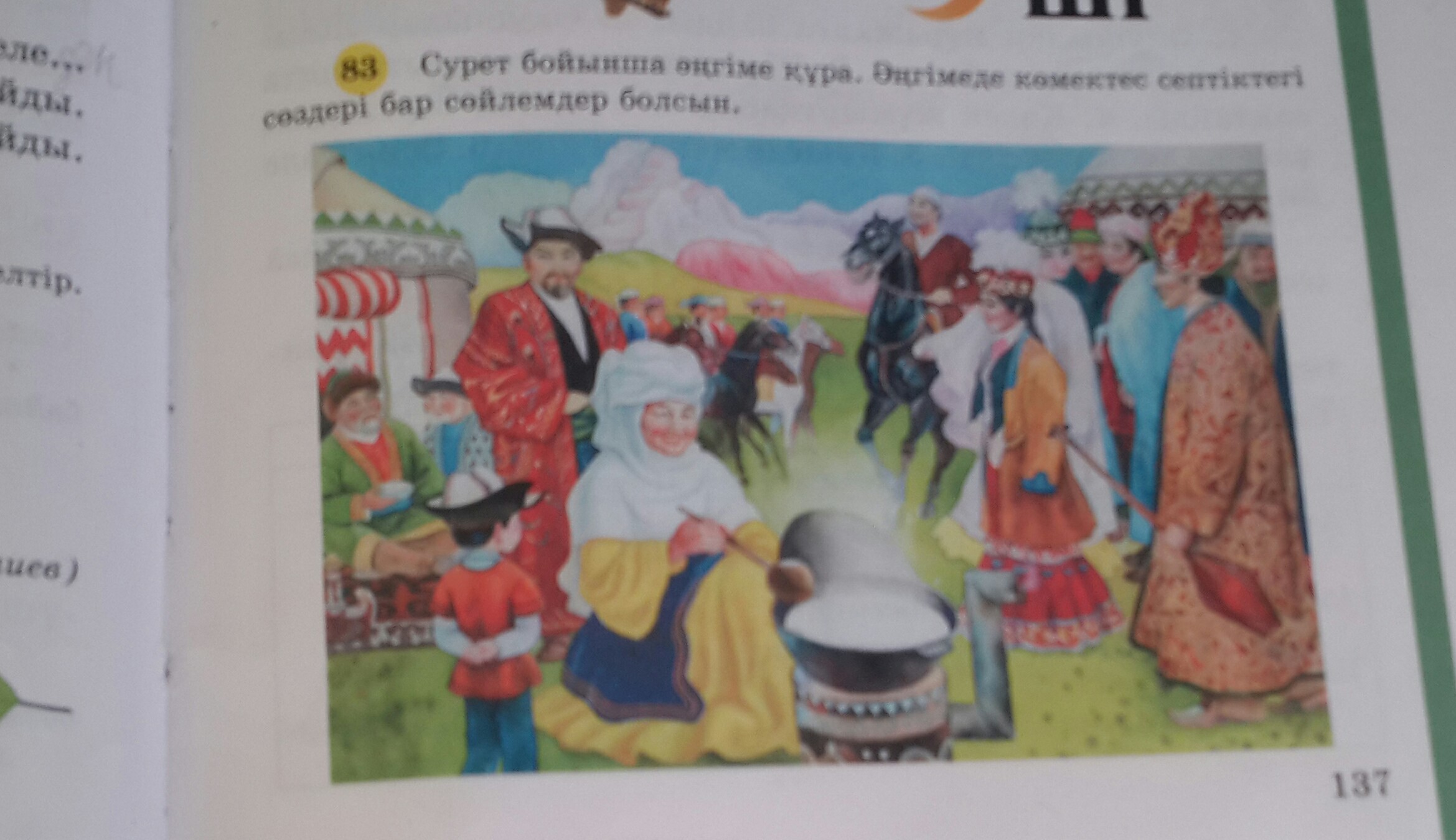 Көктем. Көктемде наурыз көже дейтін мереке бар. Əжесі наурыз көже пісіріп жатыр. Балалар атпен жарысып жүр