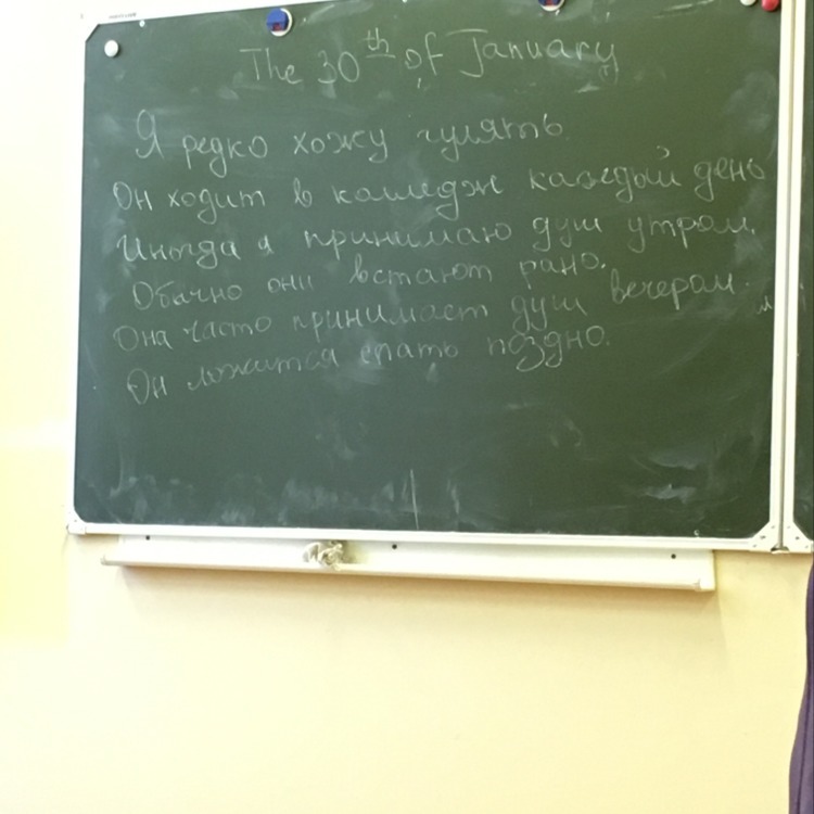 I rarely go for a walk.He goes to college every day. Sometimes i have a shower in the morning. They often get up early in the morning.She often has a shower in the evening. He goes to bed late