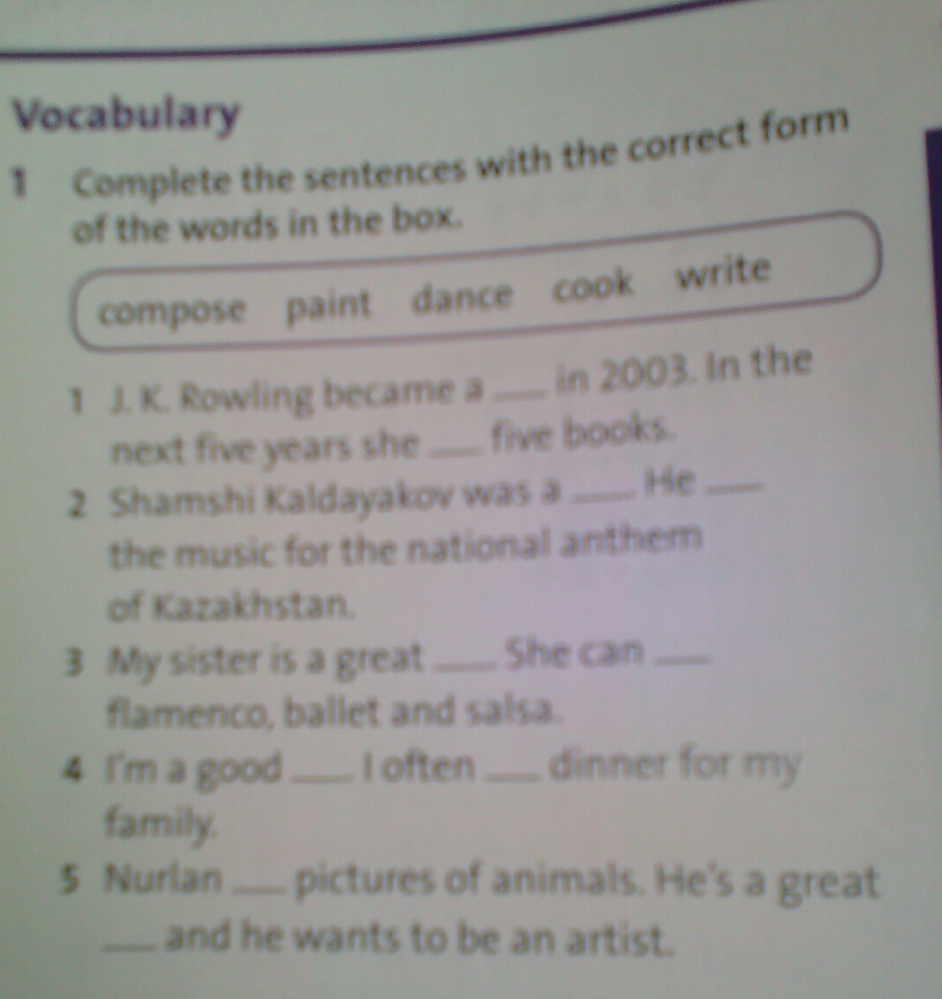 1. write, wrote