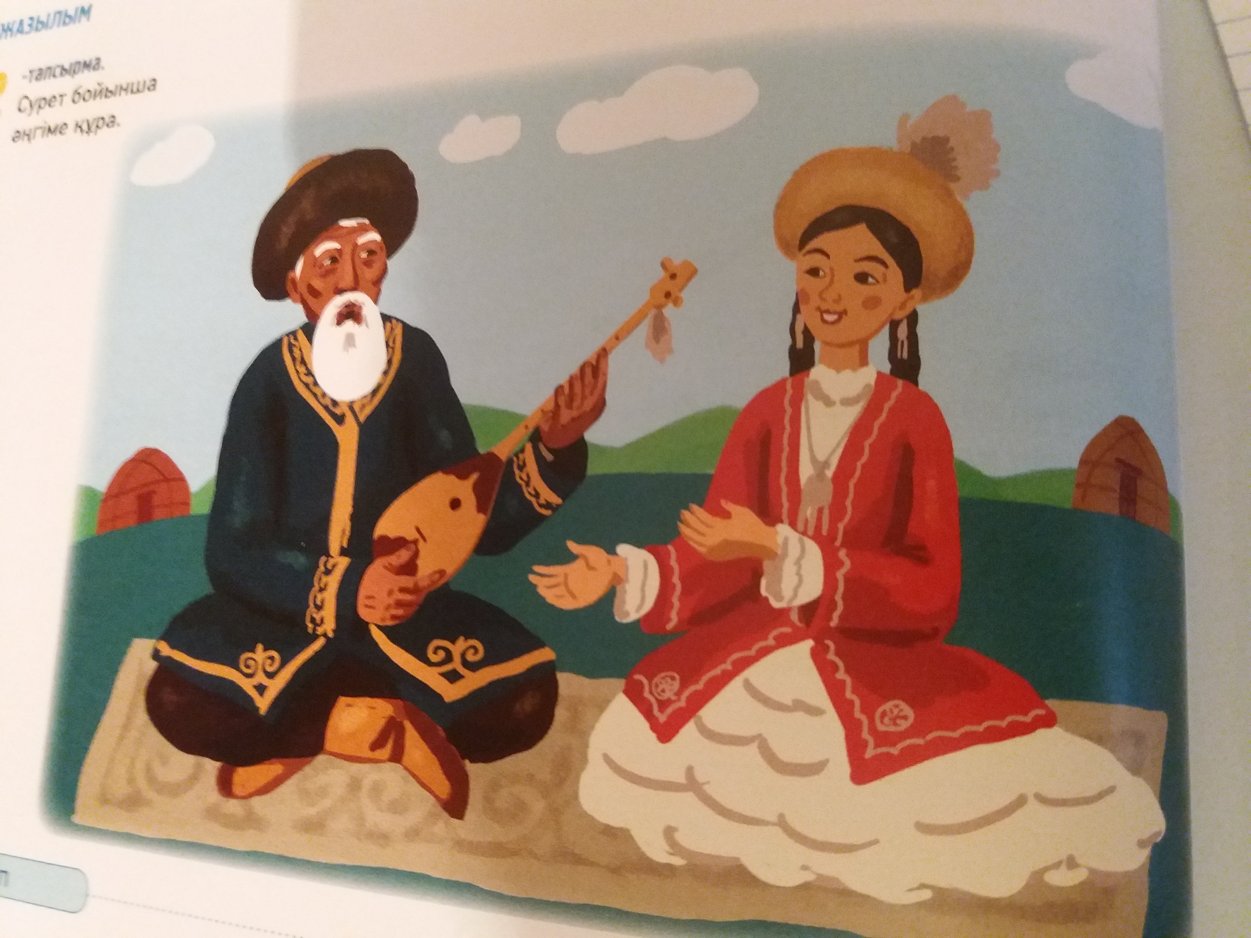 мысалы;Құрманғазы ата домбыра тартып отыр.Мадина атасының күйлерін тыңдап отыр.Мадина атадан домбыра тартуды үйреніп жүр....