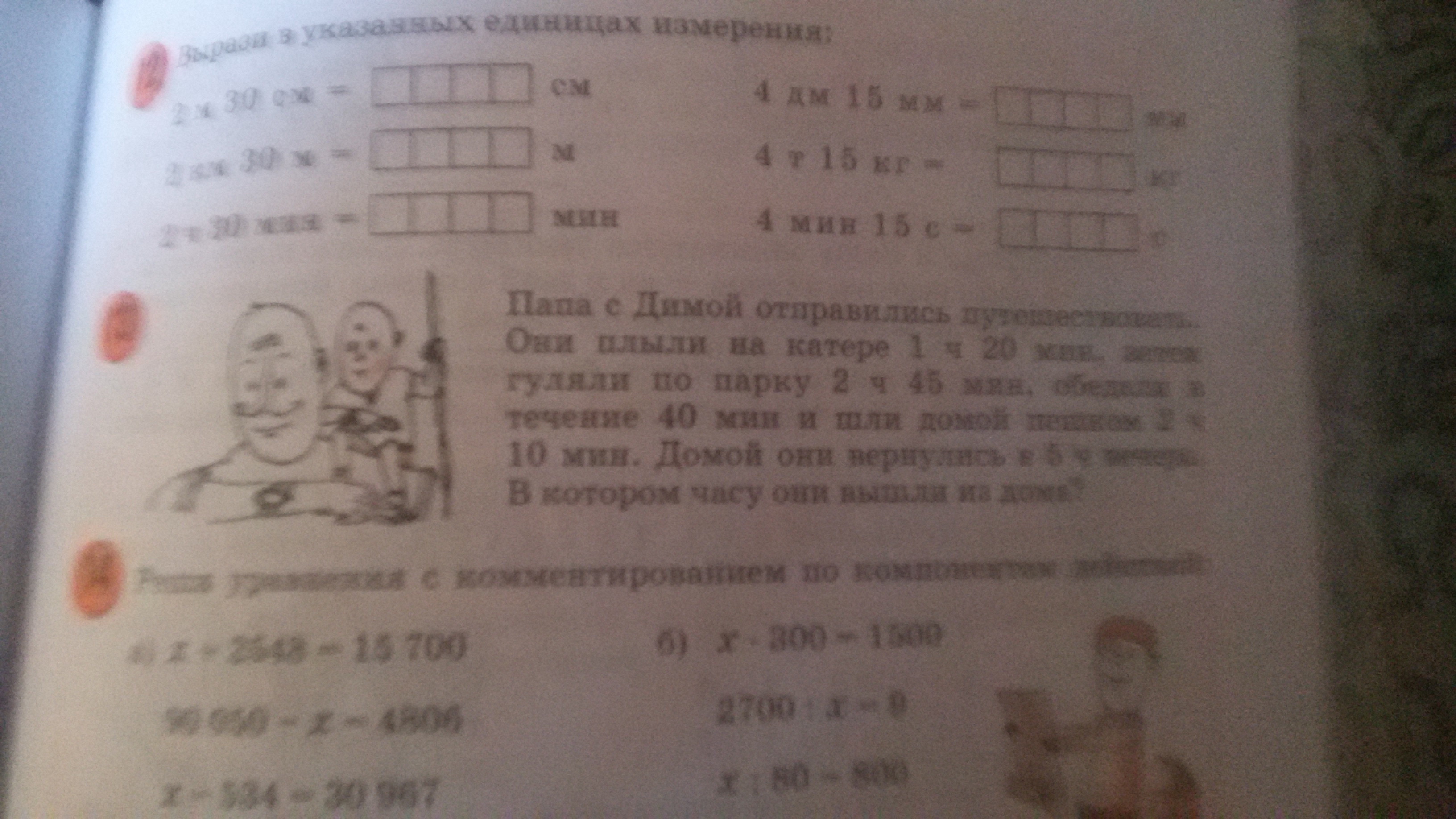 Папа с димой отправились путешествовать. Они плыли на катере 1 ч 20 мин, затем гуляли по парку 2 ч 45 мин, обедали в течении 40 мин и шли домой пешком 2 ч 10 мин. Домой они вернулись в 5 ч вечера. В котором часу они вышли из дому?