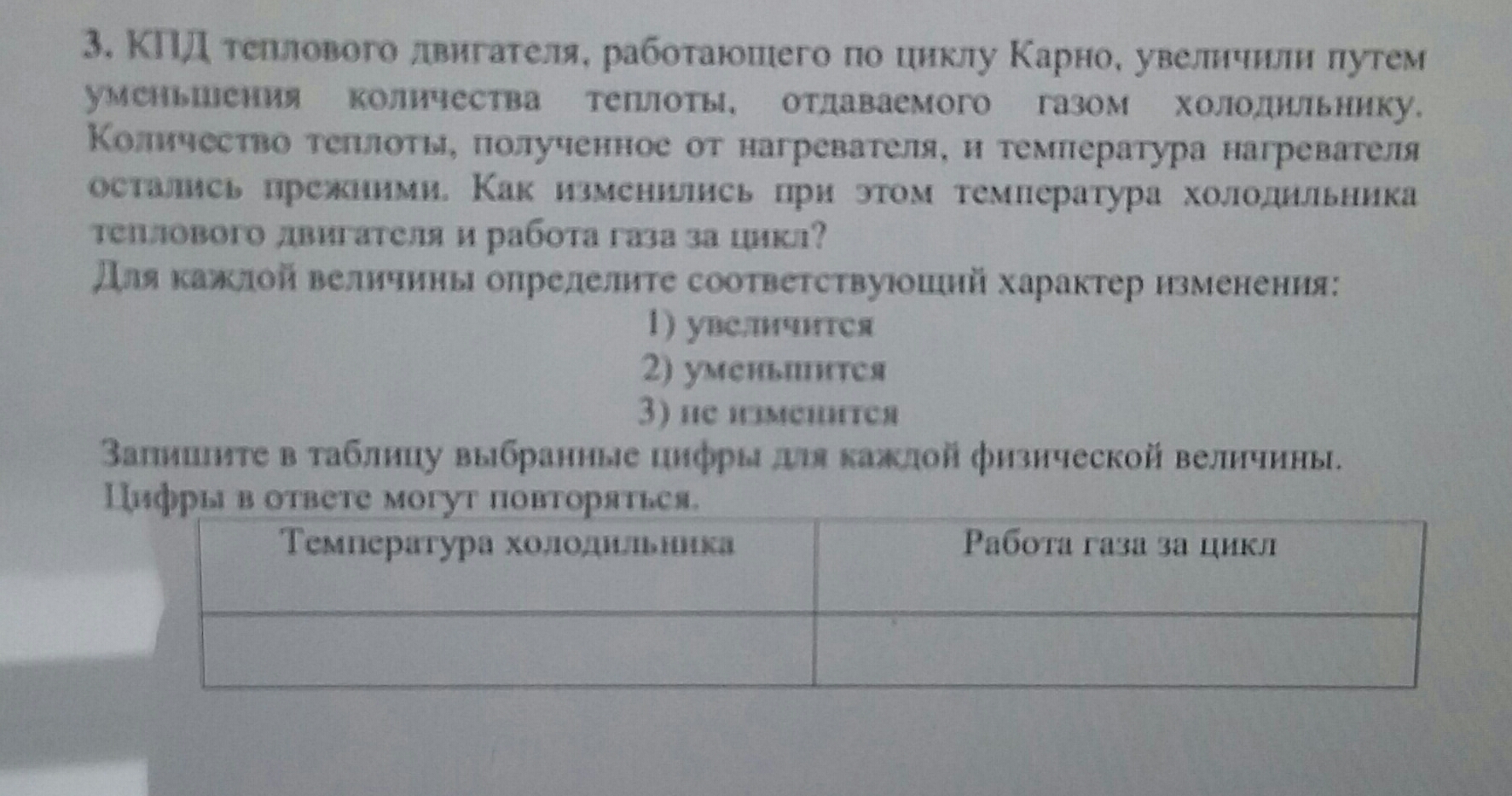 Температура холодильника уменьшится,а работа газа за цикл не изменится