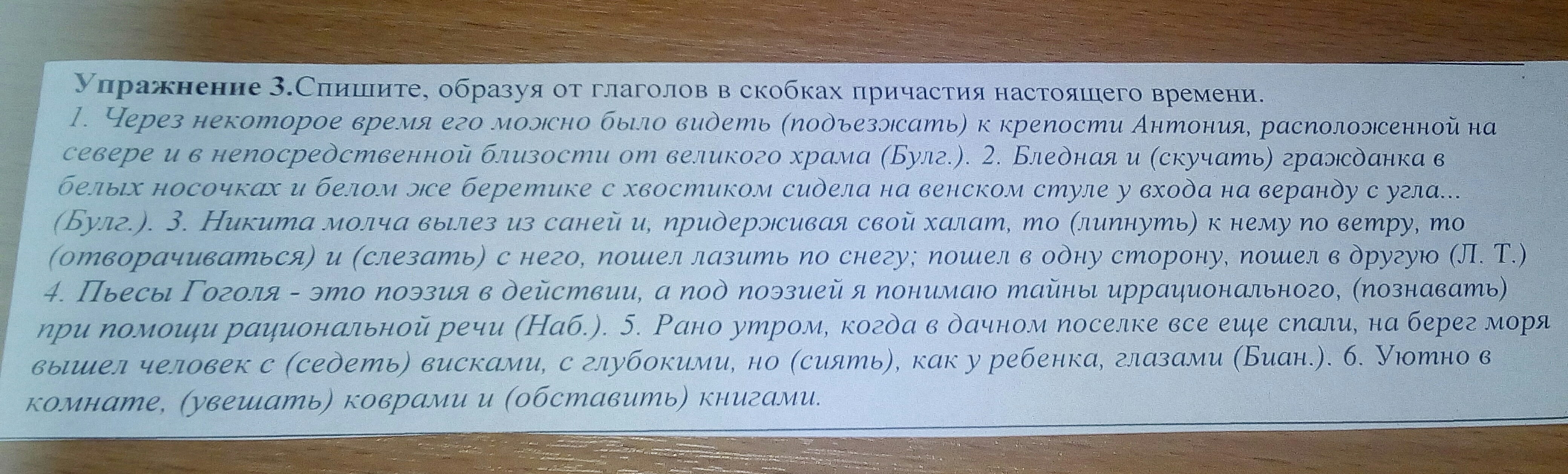 спишите образуя от глаголов в скобках причастия настоящего времени.