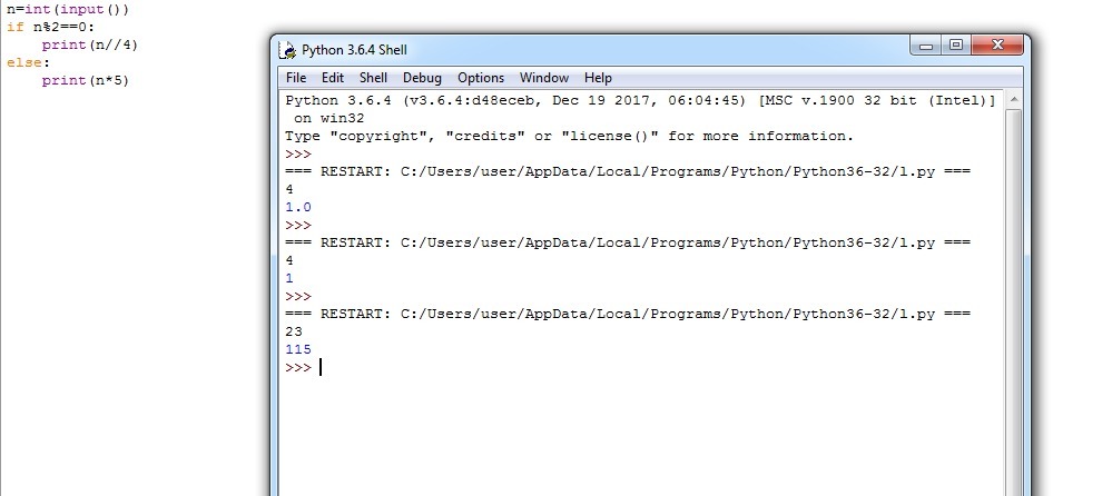 В Phyton. Вести число если оно четное разделить на 4, в противном случае умножить на 5.