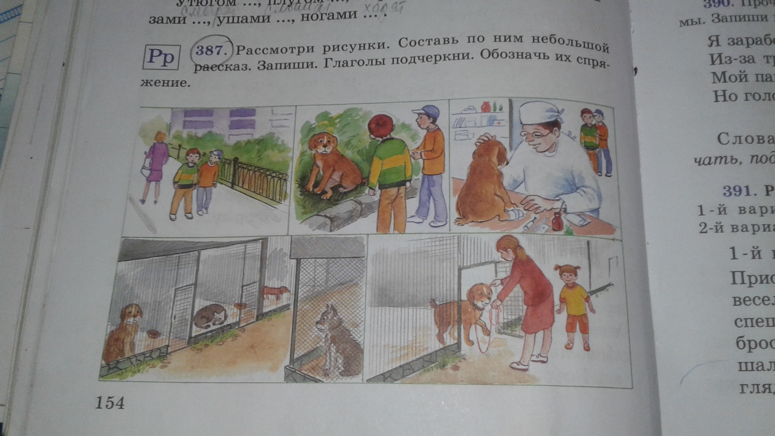 рассмотри рисунки составь по ним небольшой рассказ запиши глаголы подчеркни обозначь их спряжение
