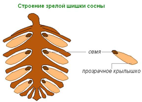 Семя сосны лежит как в чехольчике между двумя отростками крылышка.