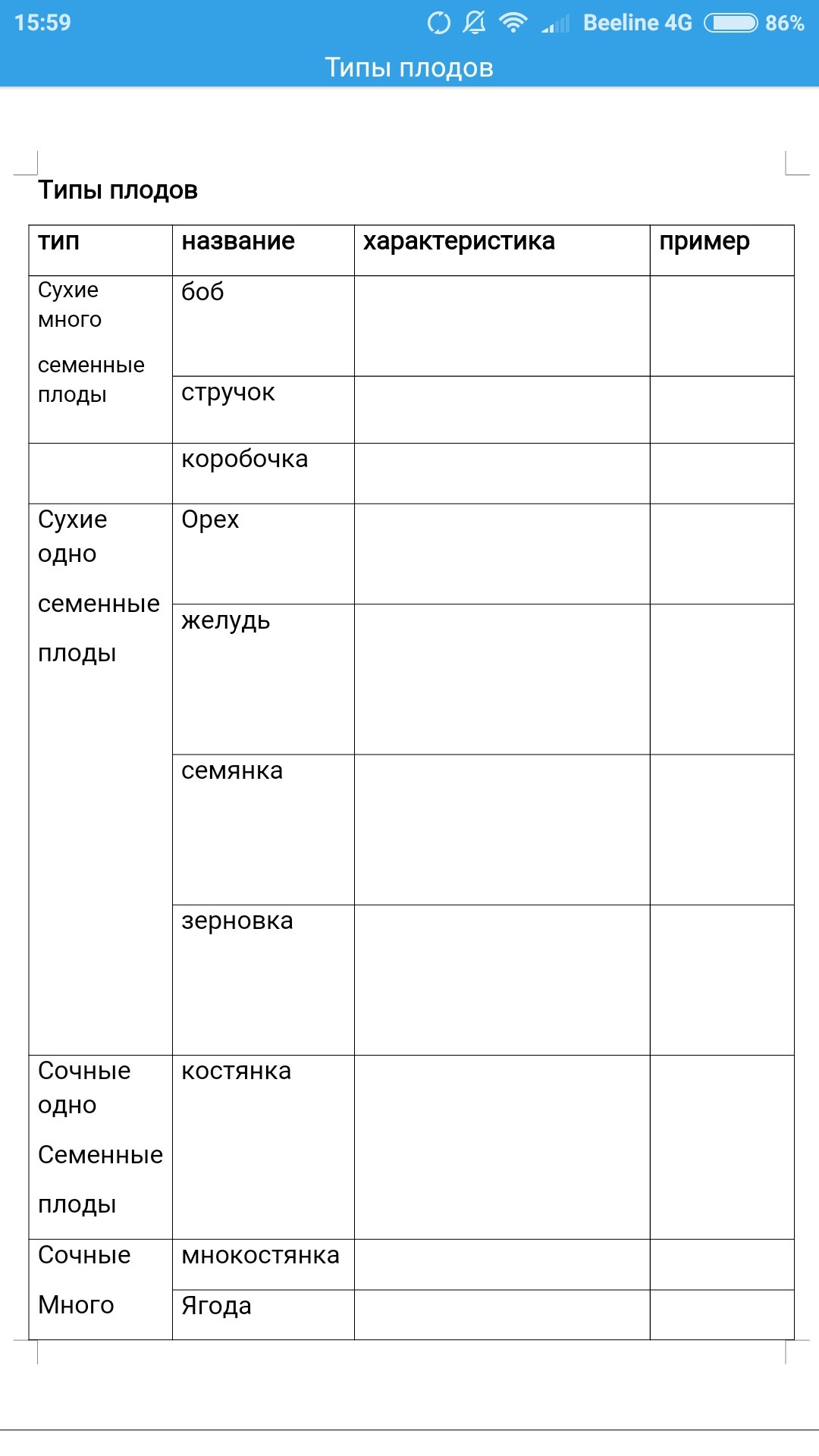 Яблоко.В формировании такого типа плода участвуют:внутренний слой околоплодника,стенки завязи,другие части цветка.Под кожурой яблока созревает сочная,душистая мякоть.Пример:яблоня,груша,айва.