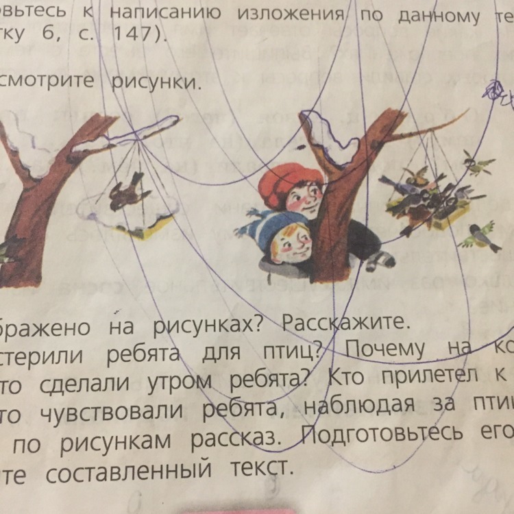 Было утро. Вова и Андрей смотрели в окно, и видели птичек. Они достали коробочку, ниточку и ножницы.