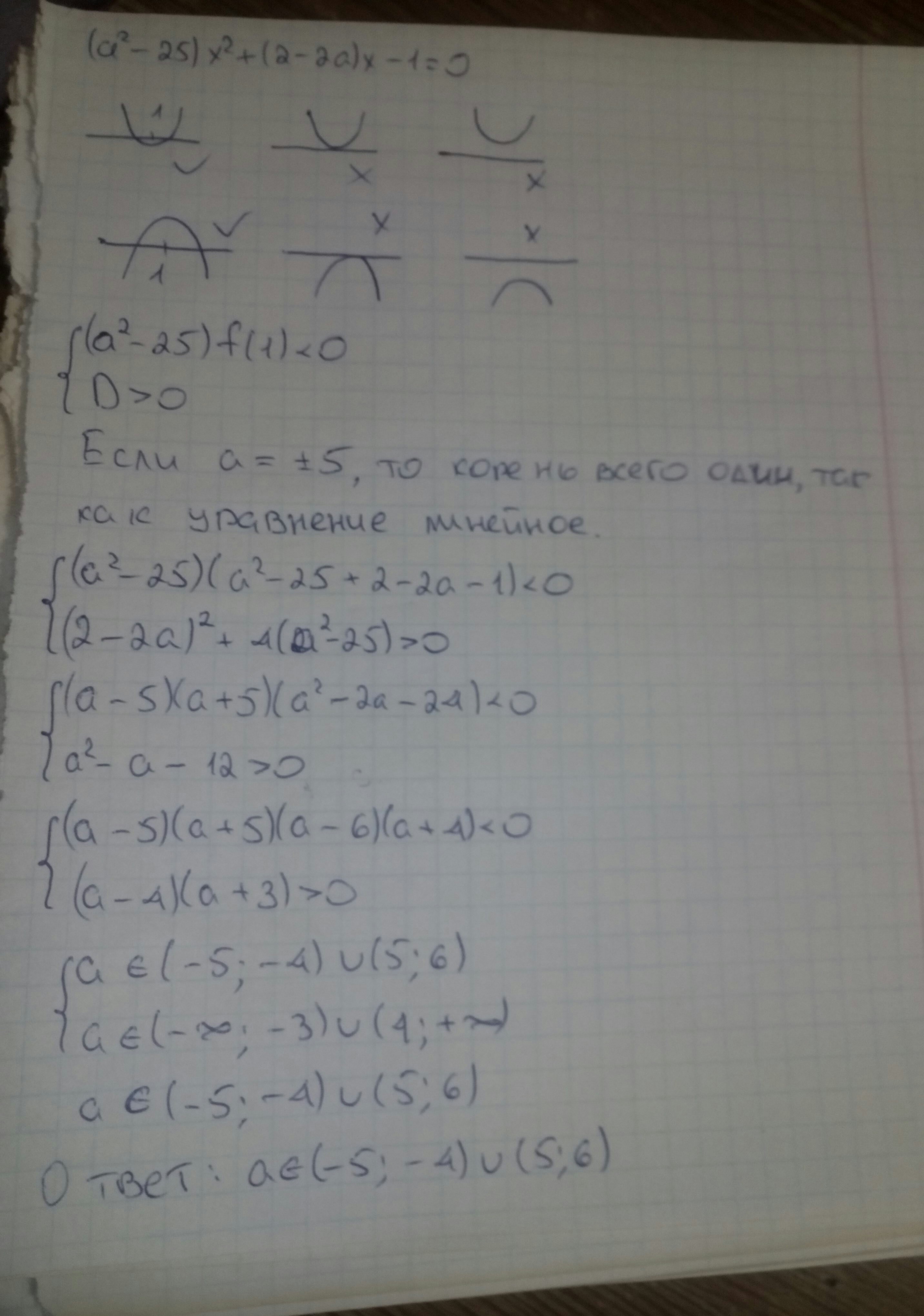 (a2 – 25)x2 + (– 2a + 2)x – 1 = 0
