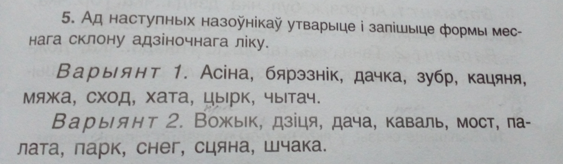 Ад наступных назо утварыце и запишыце формы местнага склону адзиночнага лику