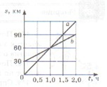 №1. На рисунке дан график зависимости пути от времени движения мопеда (а) и велосипеда (b).