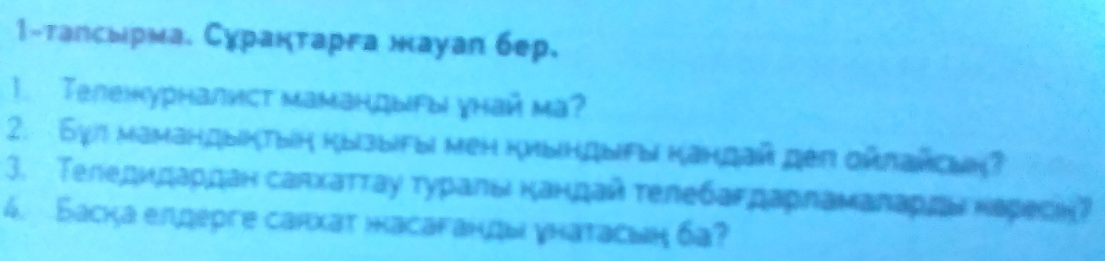 2) Қызығы -көптеген жерлерді аралайсың, сұхбат алу бəрі-бірі қызық.Қиындыәы ол үшін алмай еңбек етіп, дауысына қарау керек.