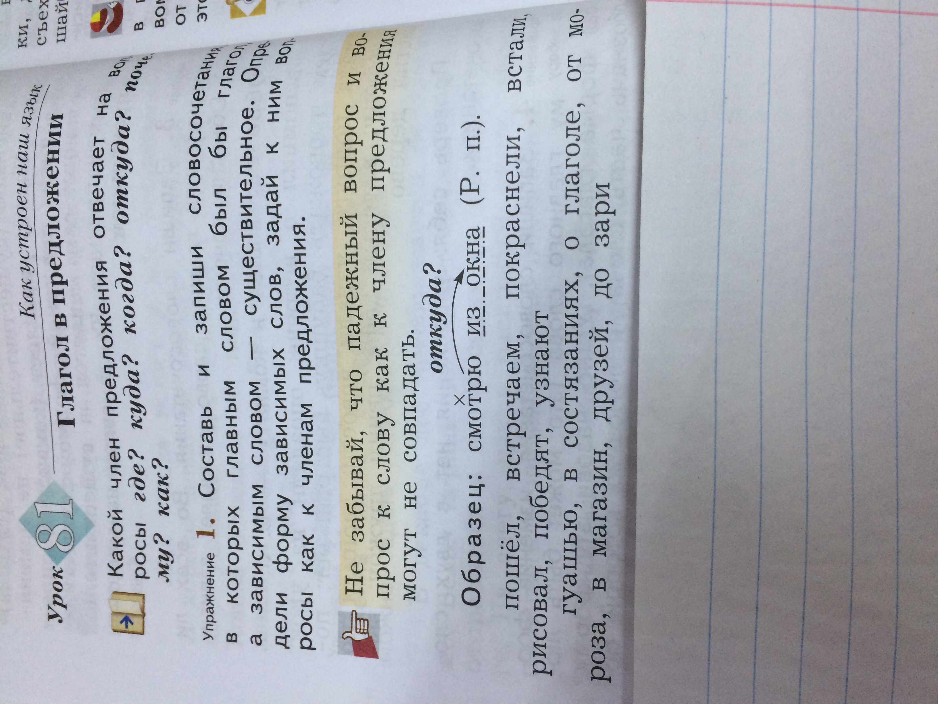Составь и запиши словосочетания в которых главным словом был бы глагол, а зависимым словом - существительное. Определи форму зависимых слов, задай к ним вопросы как к членам предложения.