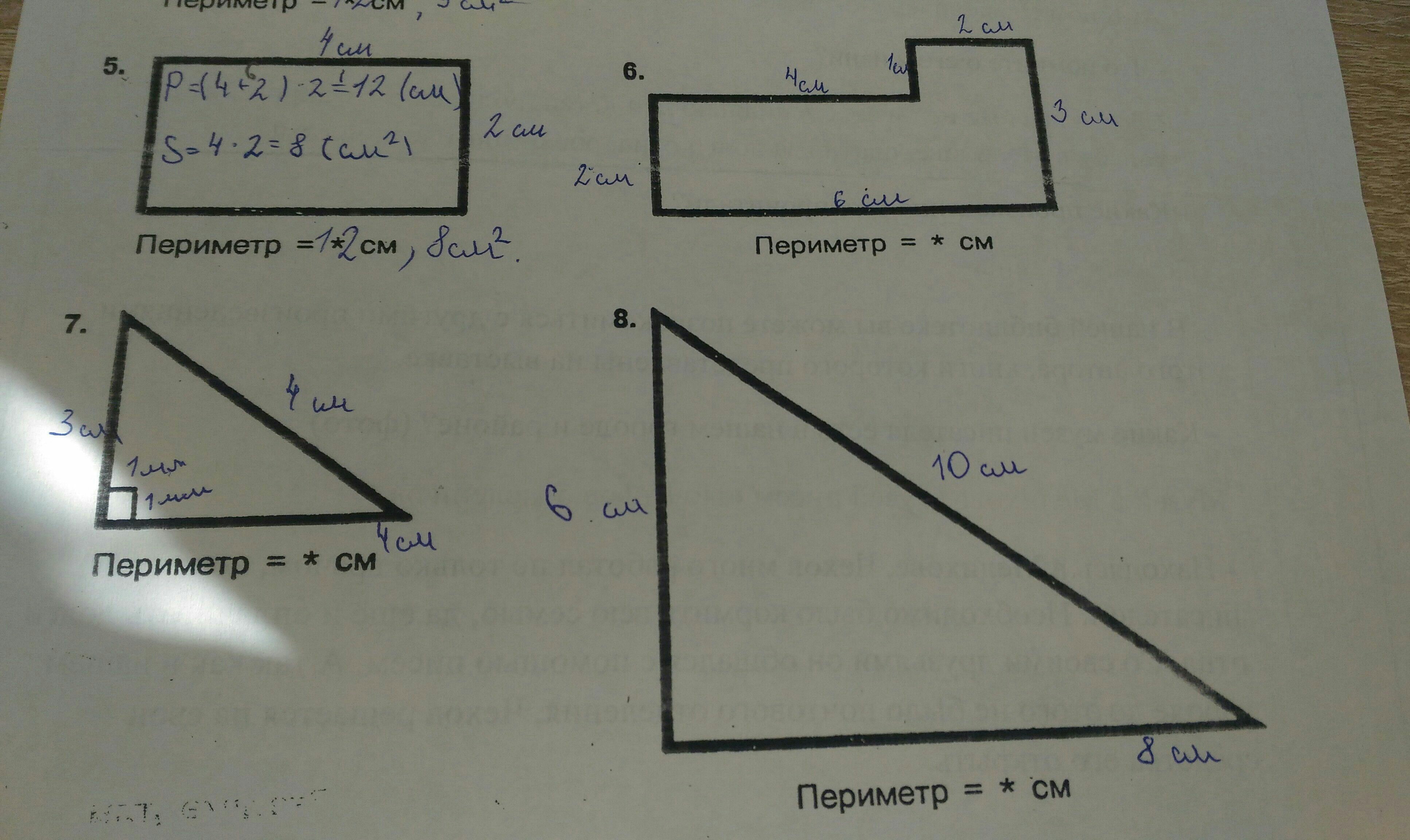 помогите пожалуйста! Как найти периметр и площадь номер 6 7 8