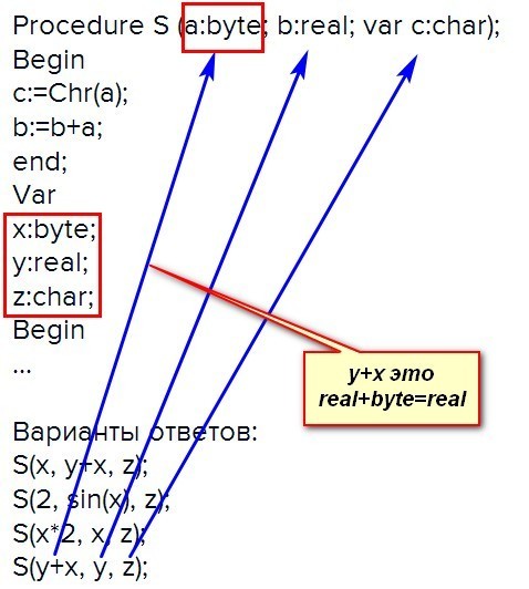 y+x имеет тип real+byte = real и не может быть подставлен туда, где ожидался byte. Это связано с запретом в Паскале неявного приведения вещественного типа к целочисленному.