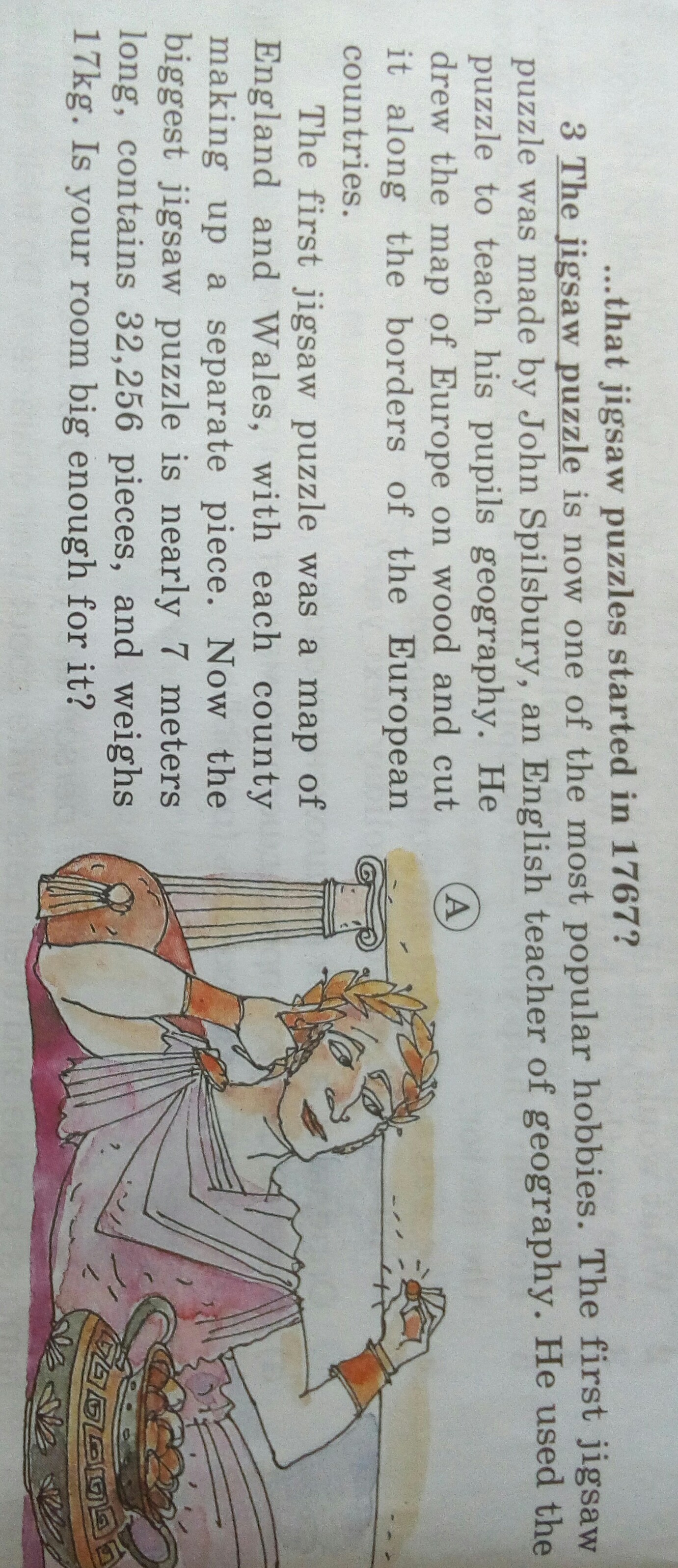 ... что головоломки были начаты в 1767 году? Мозговая головоломка теперь является одним из самых популярных хобби. Первый j был сделан Джоном Спилсбери, учителем английского языка по географии. нам научить его учеников географии. Он представляет собой карту Европы по дереву и (A вдоль границ европейских попыток). Первая головоломка - это карта желез и Уэльса, каждая из которых имеет отдельный фрагмент. Теперь головоломка составляет около 7 метров, содержит 32 256 штук и весит вашу комнату достаточно большой для этого?