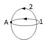Заряд перемещается в электростатическом поле из точки А по замкнутой траектории двумя способами, как показано на рисунке. В каком случае полем совершена большая работа?