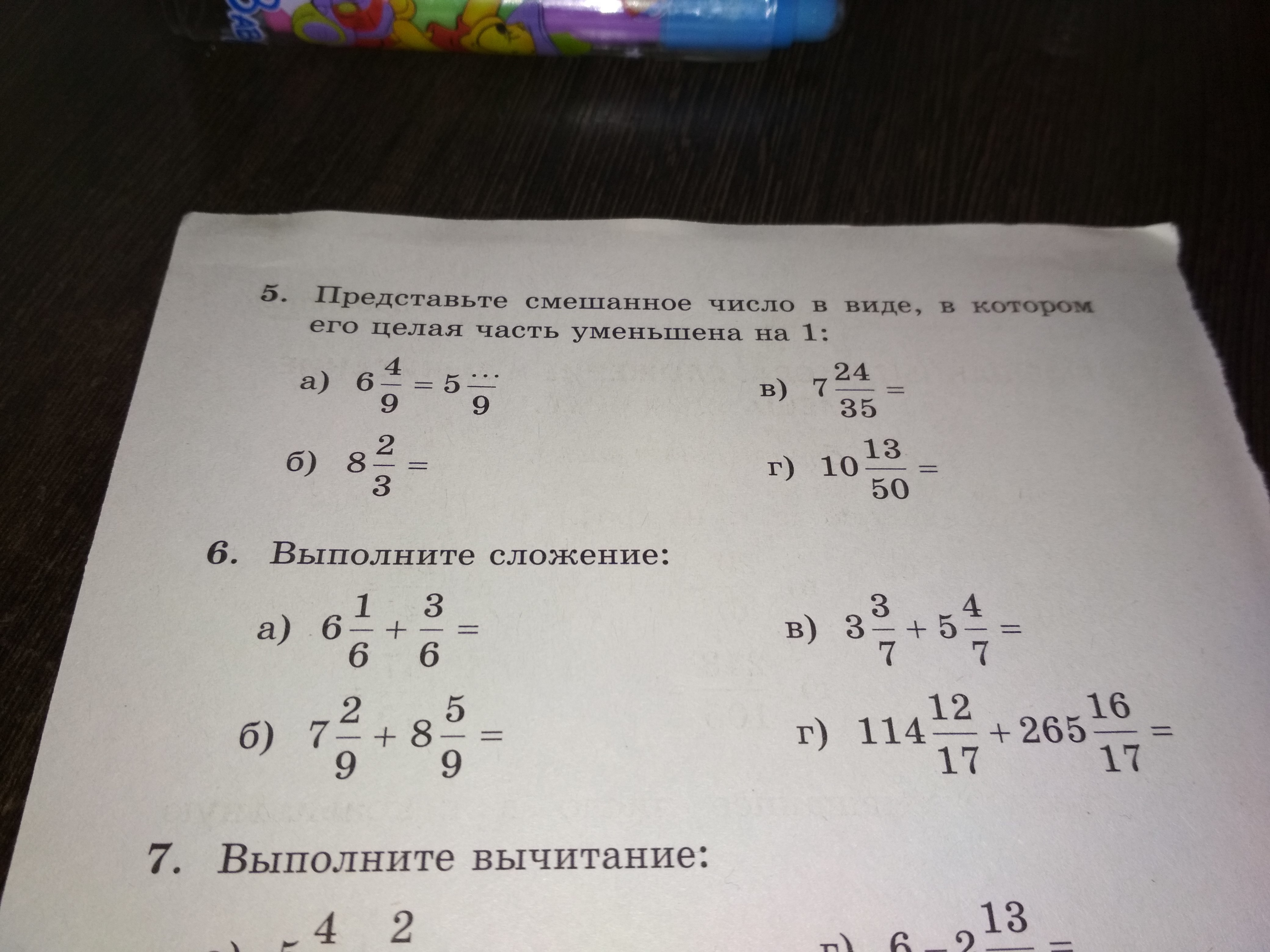 а) 6 4/6 б) 15 7/9 в) 8 7/7=9 г) 379 28/17