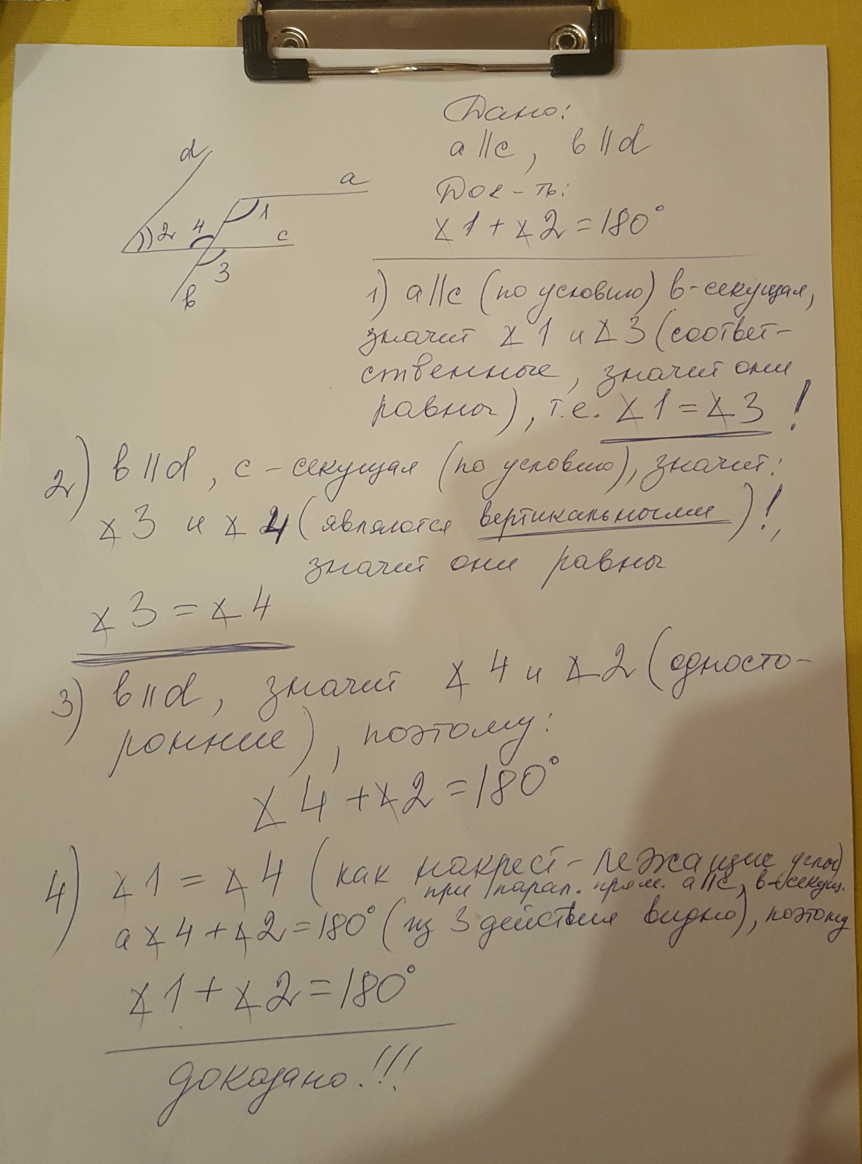 На рисунке 15.11 стороны а и b одного угла соответственно параллельны сторонам с и d другого угла . Докажите , что эти углы в сумме составляют 180 градусов