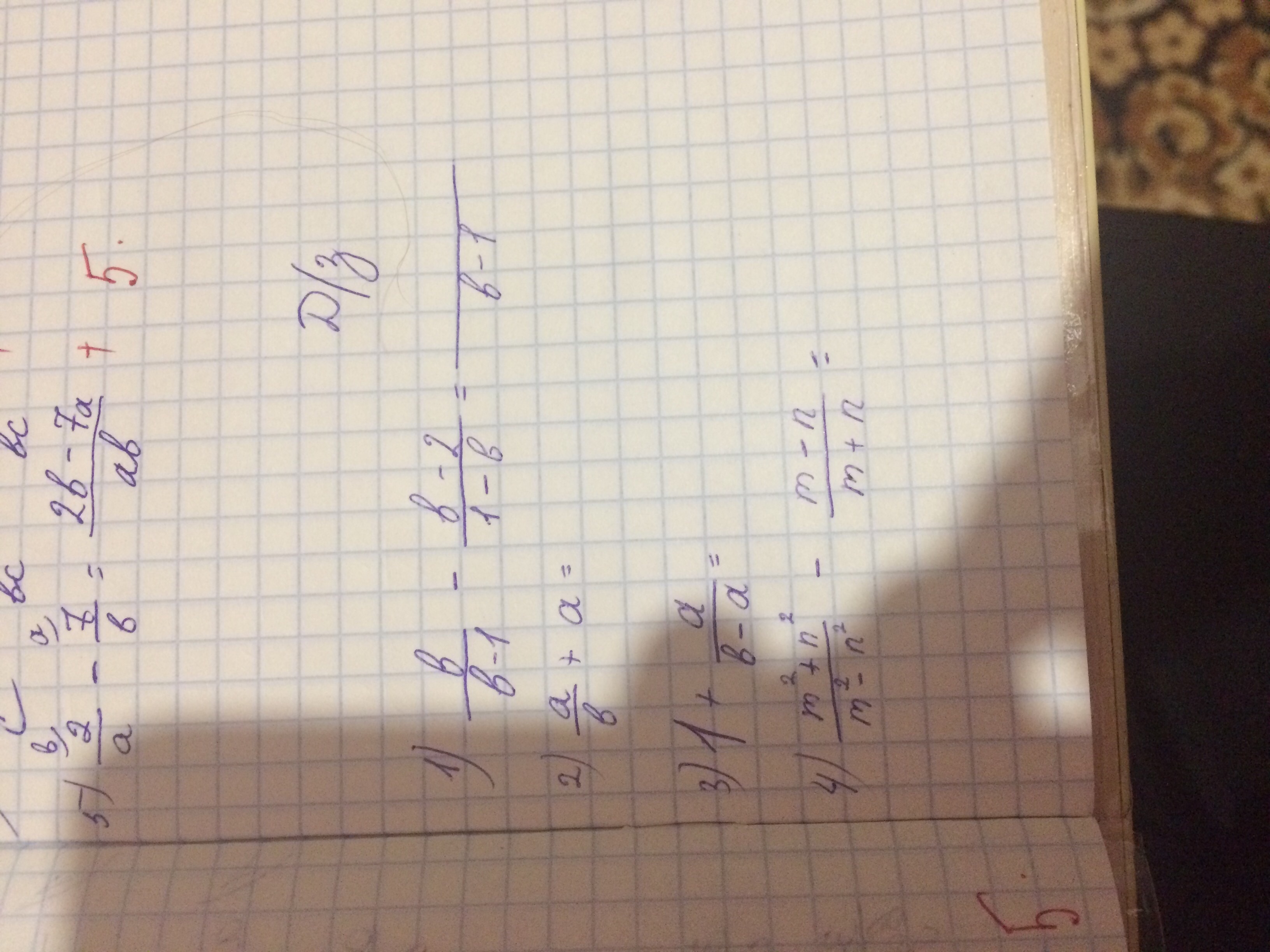 1/1 + a/b-a = ((b-a)*1)/((b-a)*1) + a/(b-a)=(b-a+a)/(b-a)=b/(b-a)