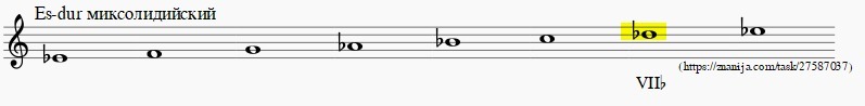 Имеем тональность Es-dur с тремя бемолями при ключе. Седьмой пониженной ступенью будет ре♭.