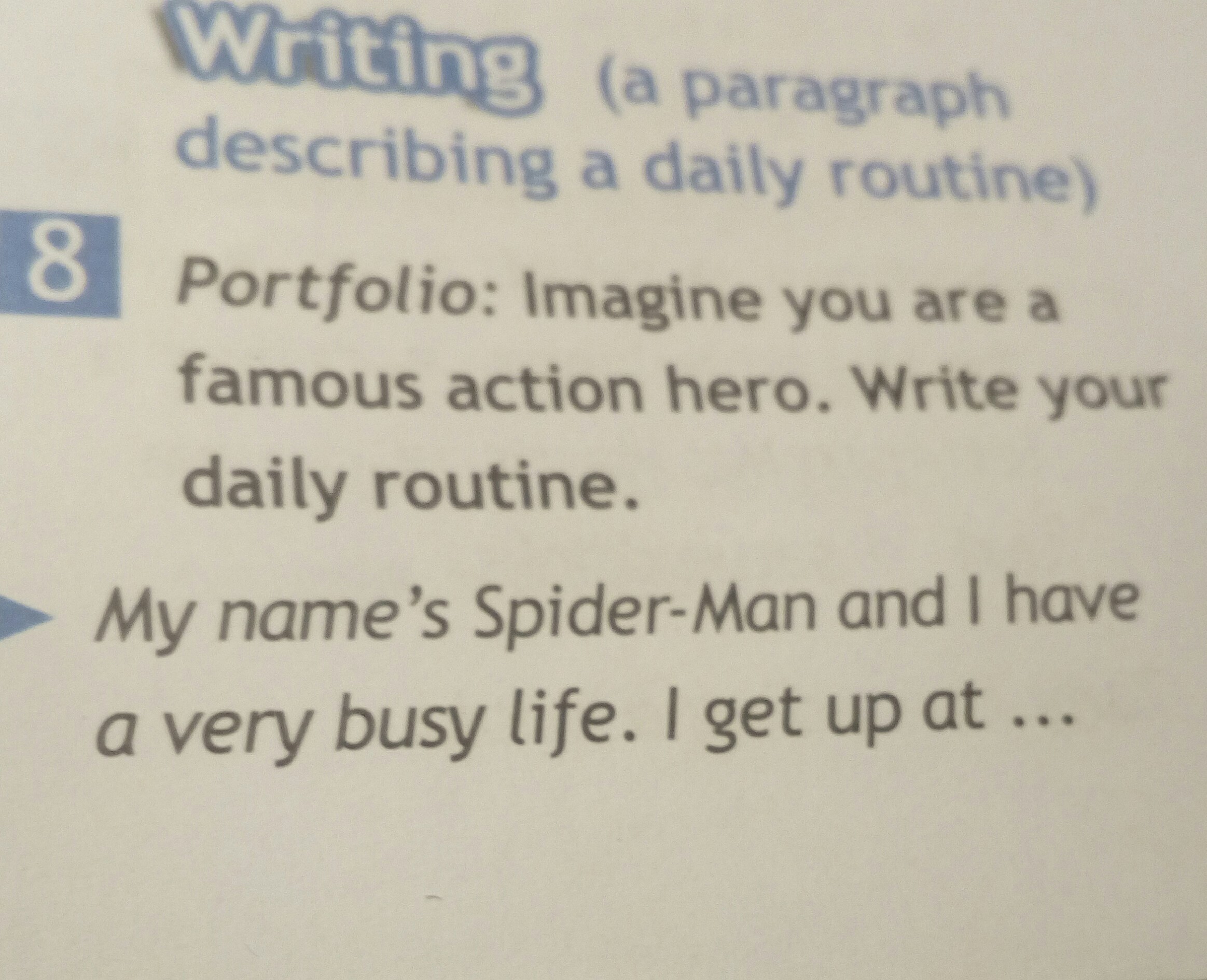 Представь, что ты знаменитый супергерой. Напиши, что ты делаешь днём (распорядок дня)