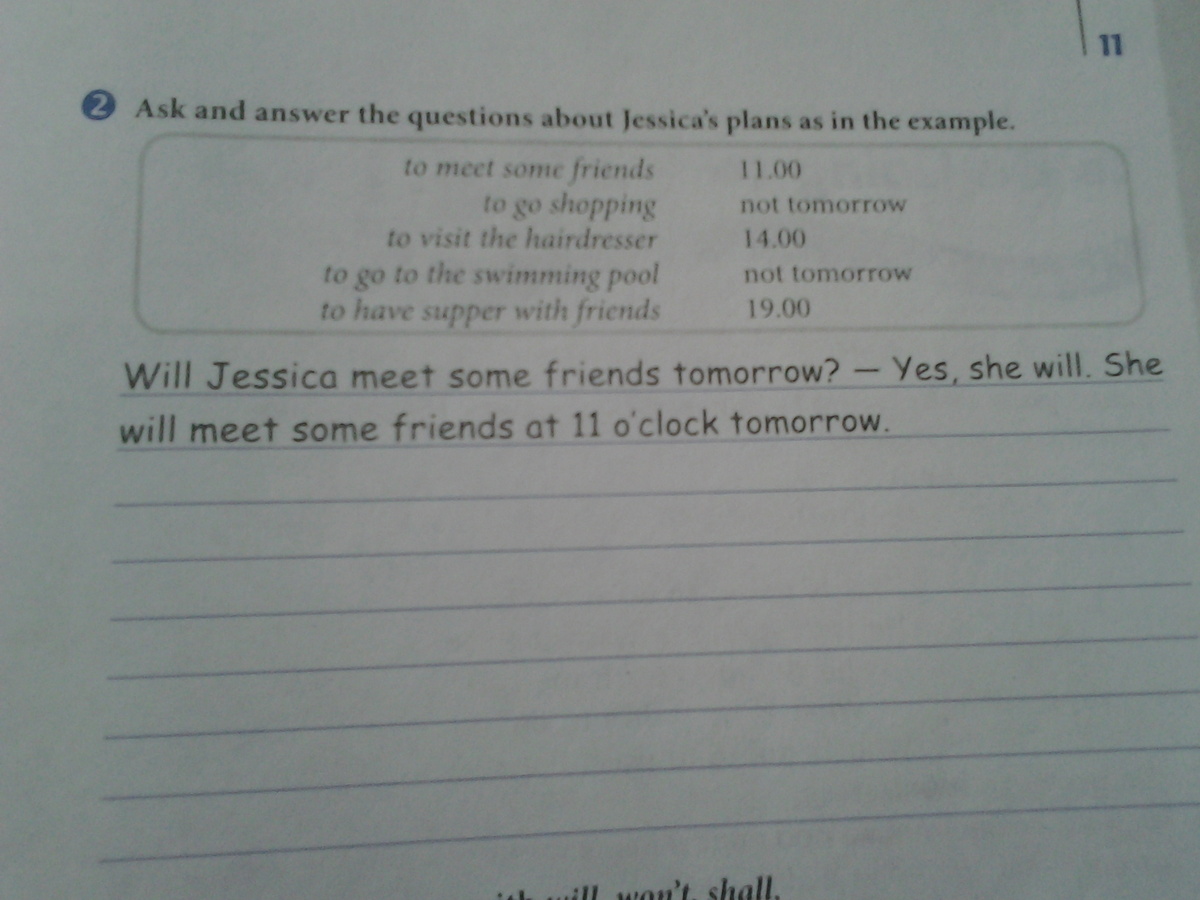 will Jessika visit hairdresser tomorrow? Yes,she will.She will go to hairdresser at 14 o clock tomorrow.