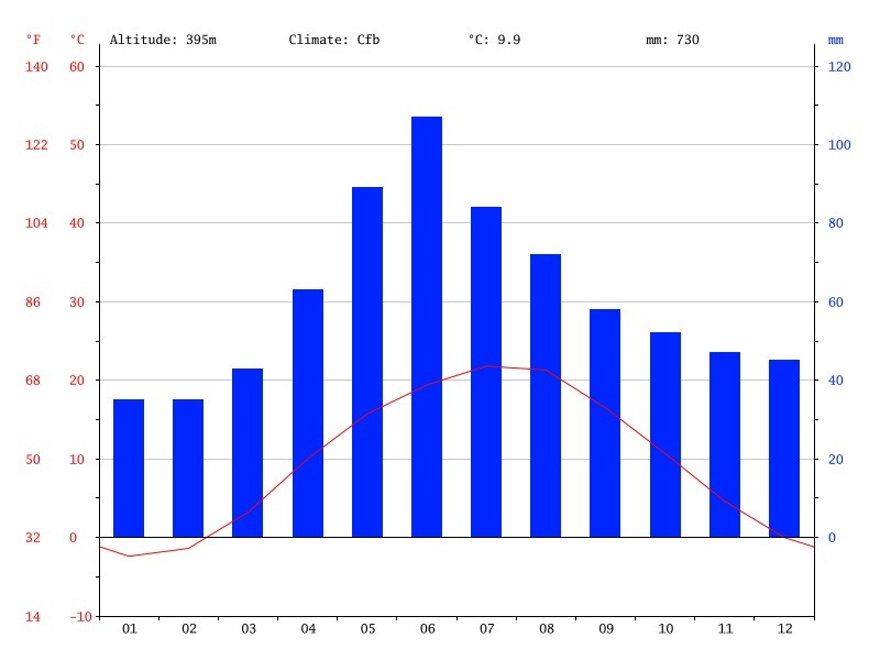 Наименьшее количество осадков выпадает в Январь. В среднем в этом месяце составляет 35 мм. Большая часть осадков выпадает в Июнь, в среднем 107 мм.