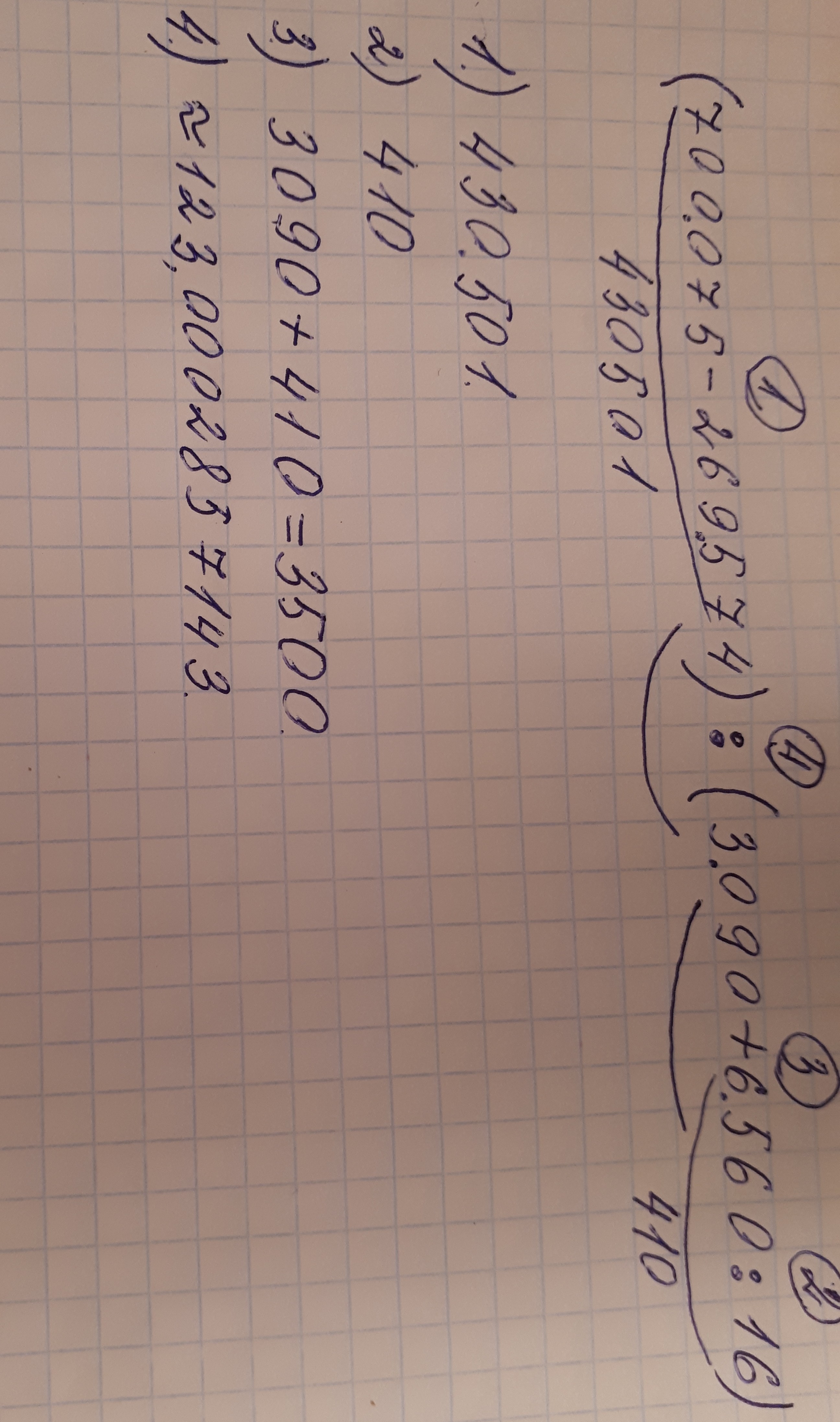 ( 700 075 - 269 574 ) :( 3 090 + 6 560 : 16)