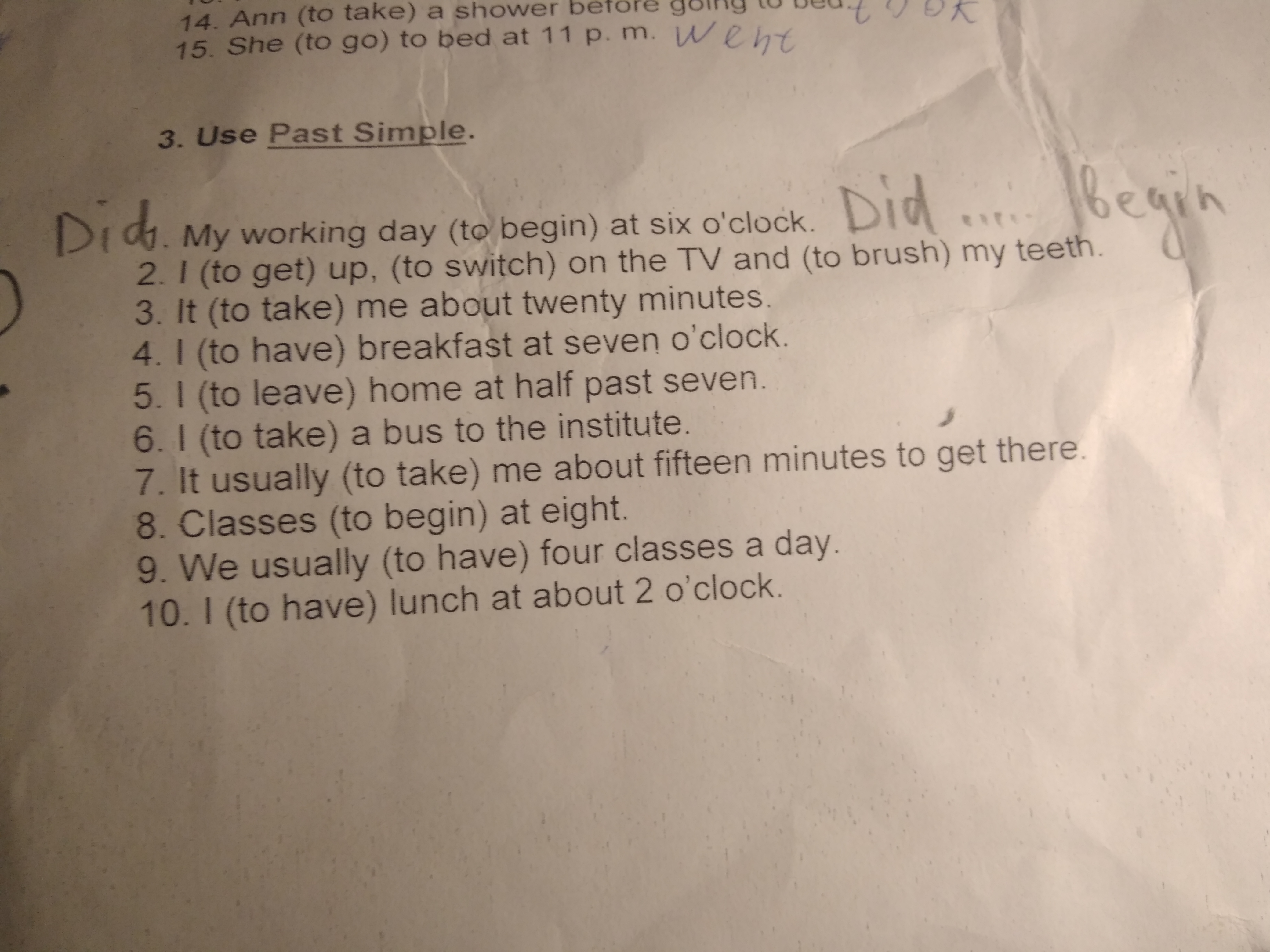 2. got up, switched