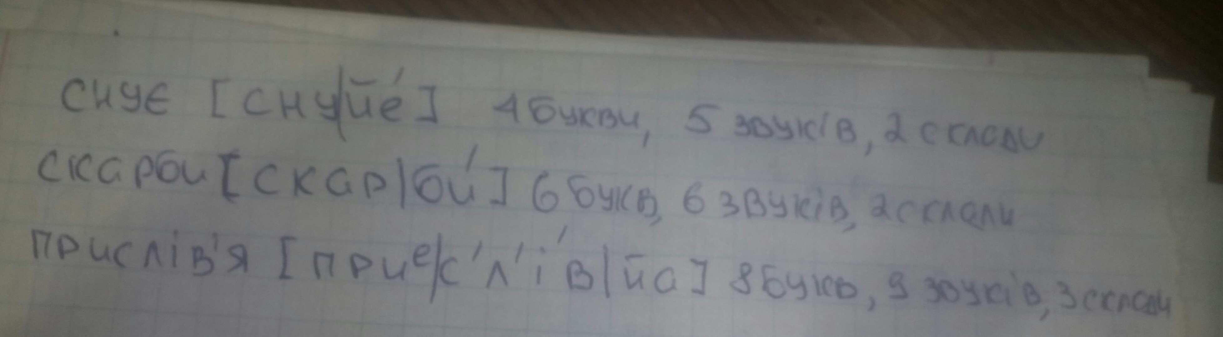 снує, скарби ,прислів'я, очевидно помогите разобрать слова сколько звуков ,сколько букв и сколько слогов