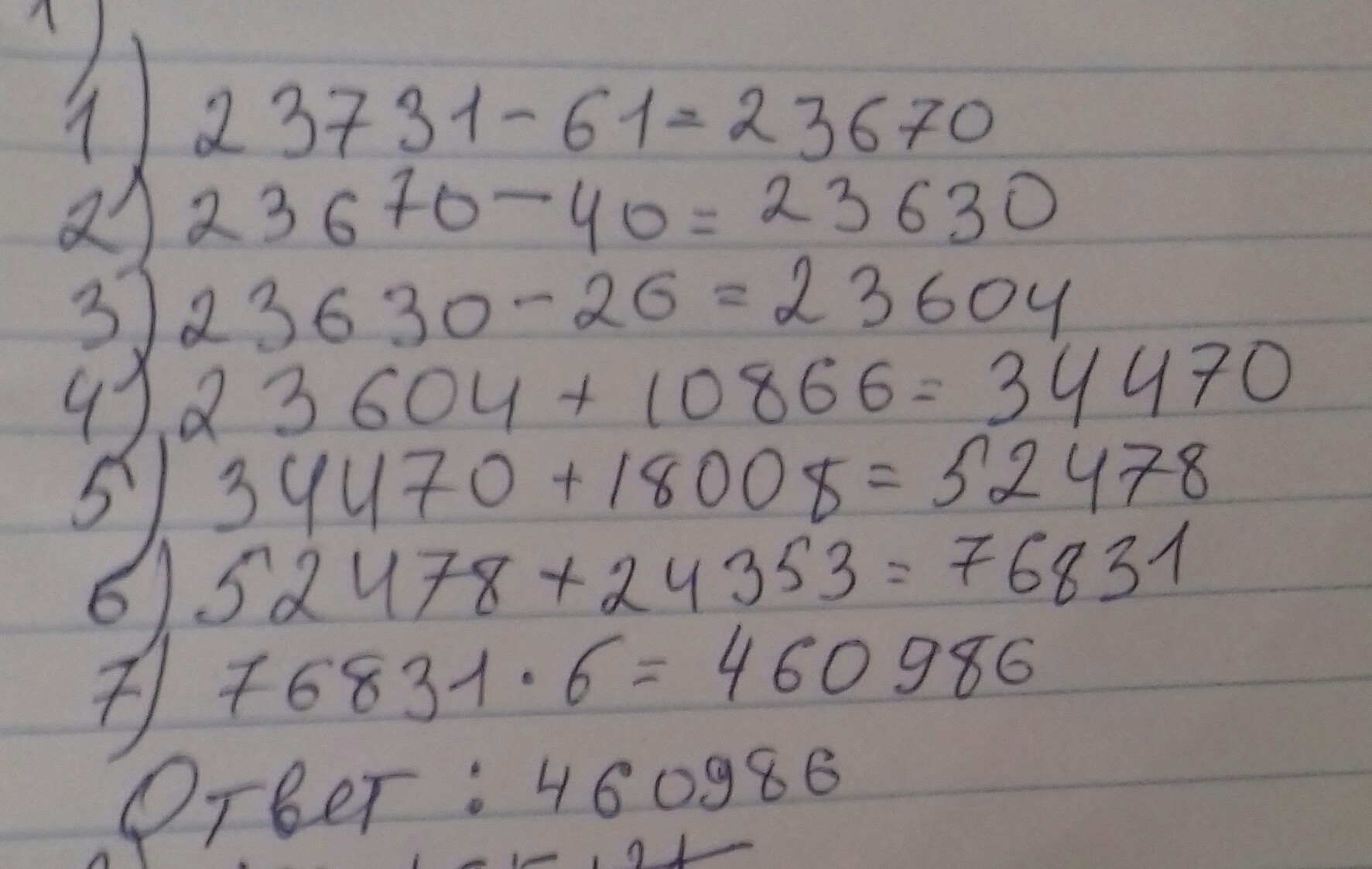 Помогите решите пример по действиям даю 12 балов больше балов нету (23731-61-40-26+10866+18008+24353)•6