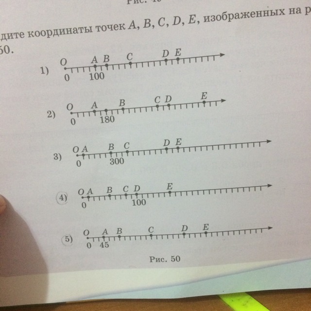 Найдите координаты точек А,В,С,Д,Е, изображённых на рисунке 50 помогите 4 и 5 Пожалуйста