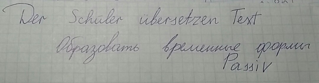 Der Text war vom Schüler übersetzt worden. (Plusquamperfekt Passiv)