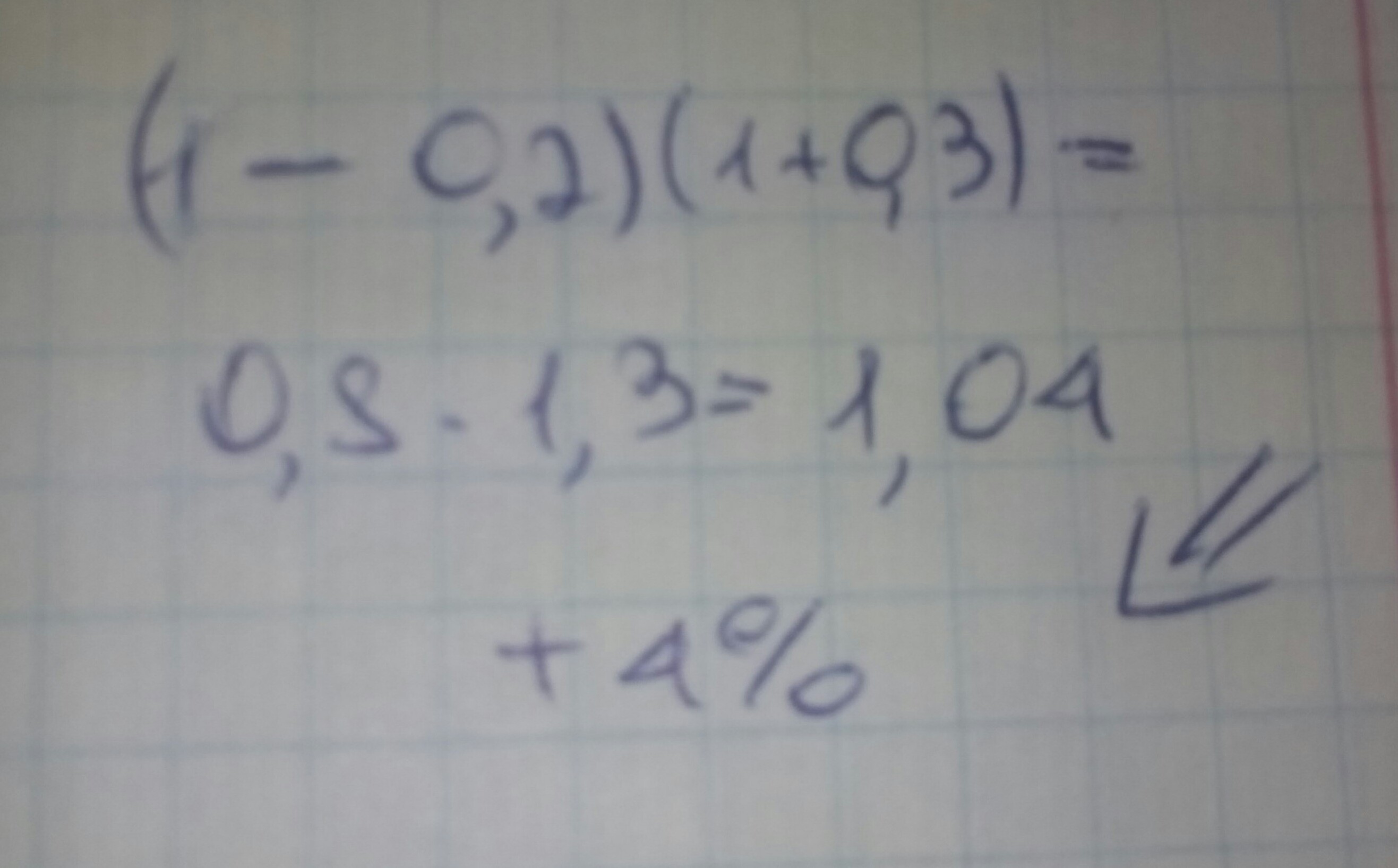 На сколько процентов изменится площадь прямоугольника, если его длину уменьшить на 20%, а ширину увеличить на 30%?