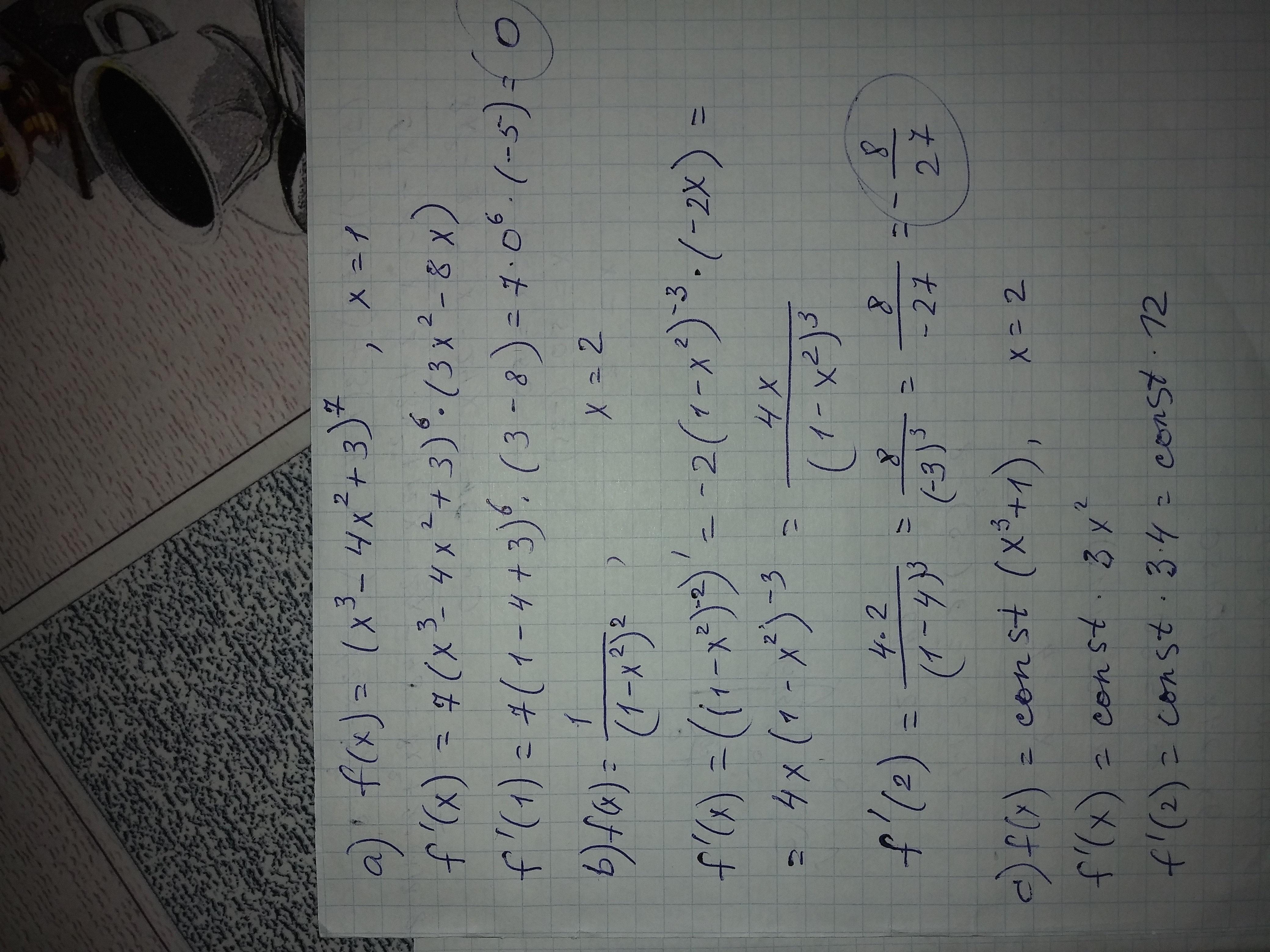 a)f(x)=(x^3-4x^2+3)^7 x=1