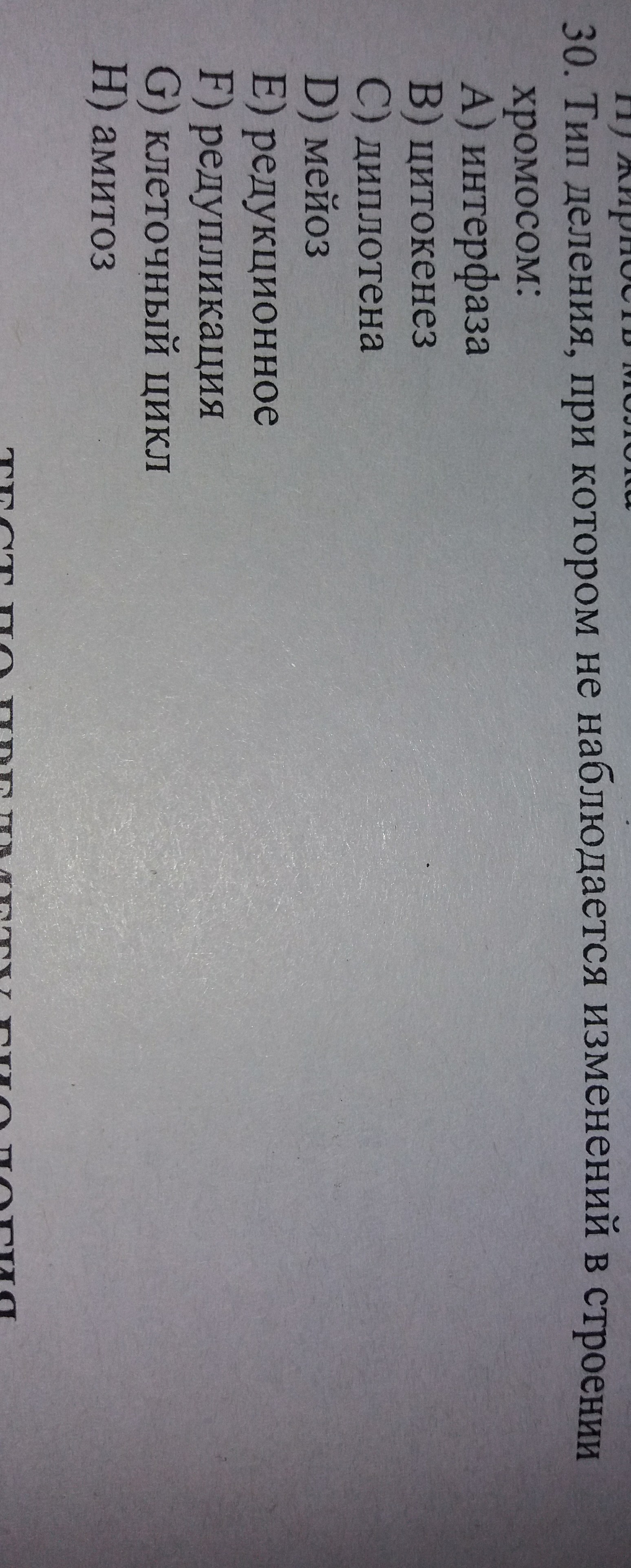 правильный ответ d- мейоз, т.к. там не наблюдается изменение в строении хромосом