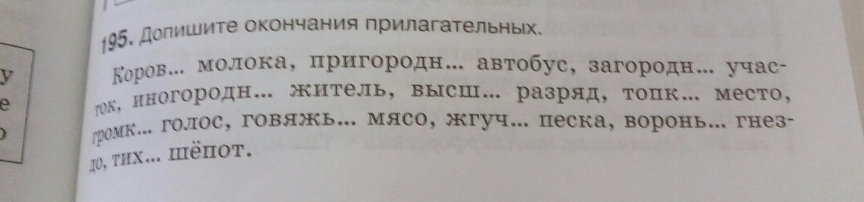 КоровьЕГО молока (Р.п.), пригороднЫЙ автобус, загороднЫЙ участок, иногороднИЙ житель, высшИЙ разряд, топкОЕ место, громкИЙ голос, говяжьЕ мясо, жгучЕГО песка (Р.п.), вороньЕ гнездо, тихИЙ шёпот.