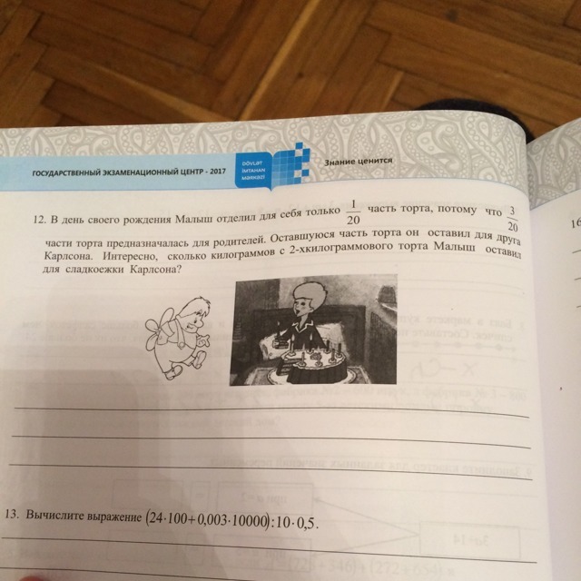 3) 20/20-(1/20+3/20)=20/20-4/20=16/20 - для Карлсона