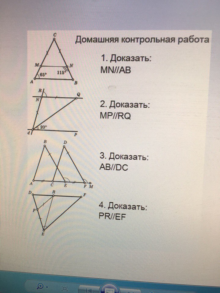 1. AMNB - равнобедренная трапеция так как MA=NB , треугольник ABC равнобедренный по условию следовательно углы при основании равны тоисть угл A= углу B=65°