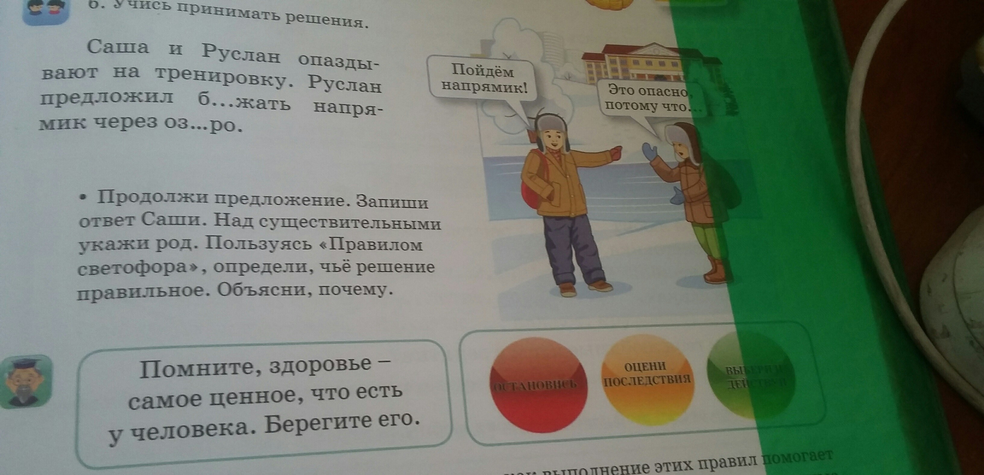 Саша и Руслан опаздывают на тренировку. Руслан предложил бежать напрямик через озеро.
