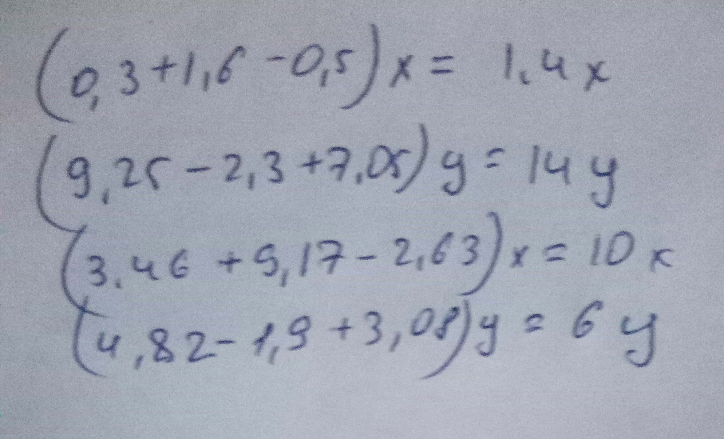 1) 0,3х + 1,6х - 0,5х= 1,4х