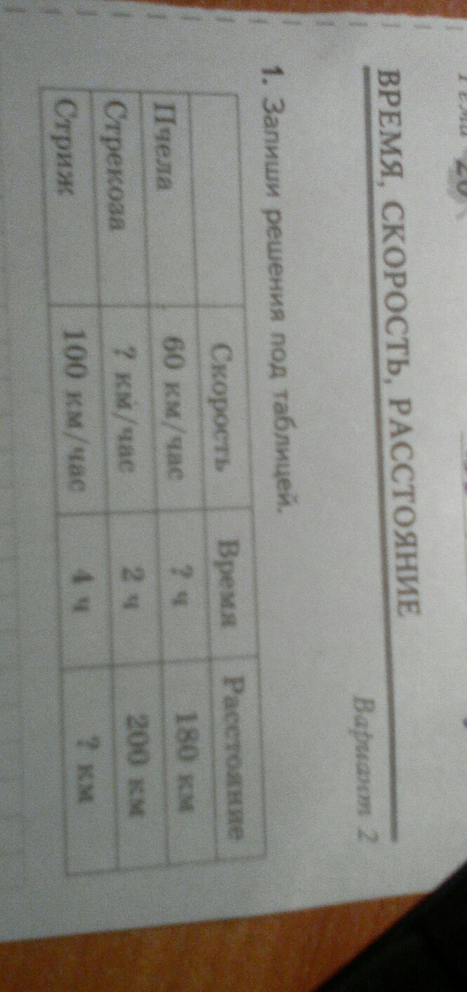 Пчела: 180:60=3 (ч),Стрекоза:200:2=100(км/ч),Стриж:100•4=400(км)