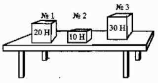 На столе лежат три бруска (см. рисунок). Площади опоры брусков относятся как 3:2:4. Какой из них оказывает большее давление на стол?