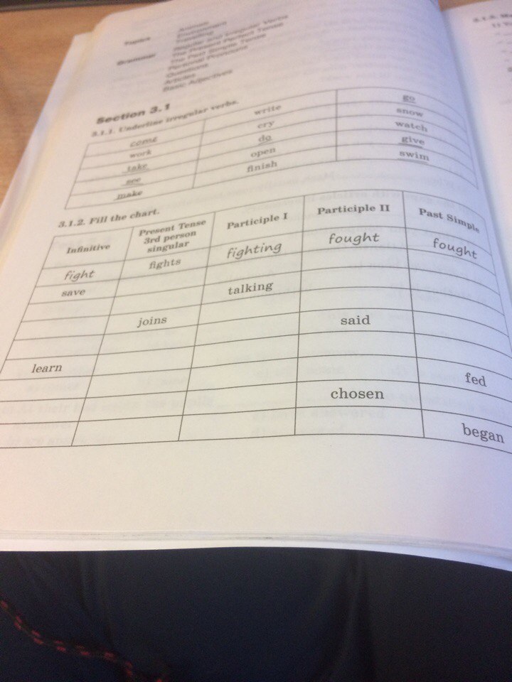 Там же ещё слово talk said(я не знаю инфинитив) fed(тоже не знаю) chose тоже began тоже