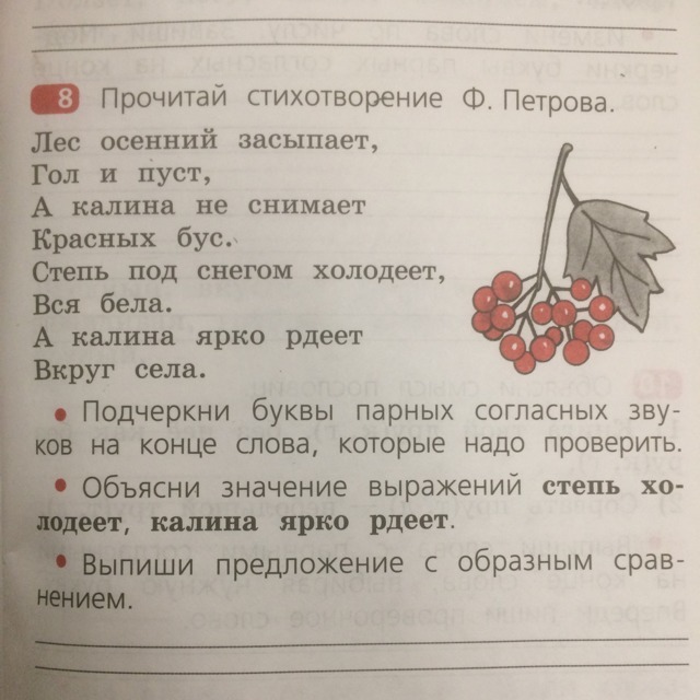 Прочитать стихотворение и подчеркнуть буквы парных согласных звуков на конце слова,которые надо проверить.