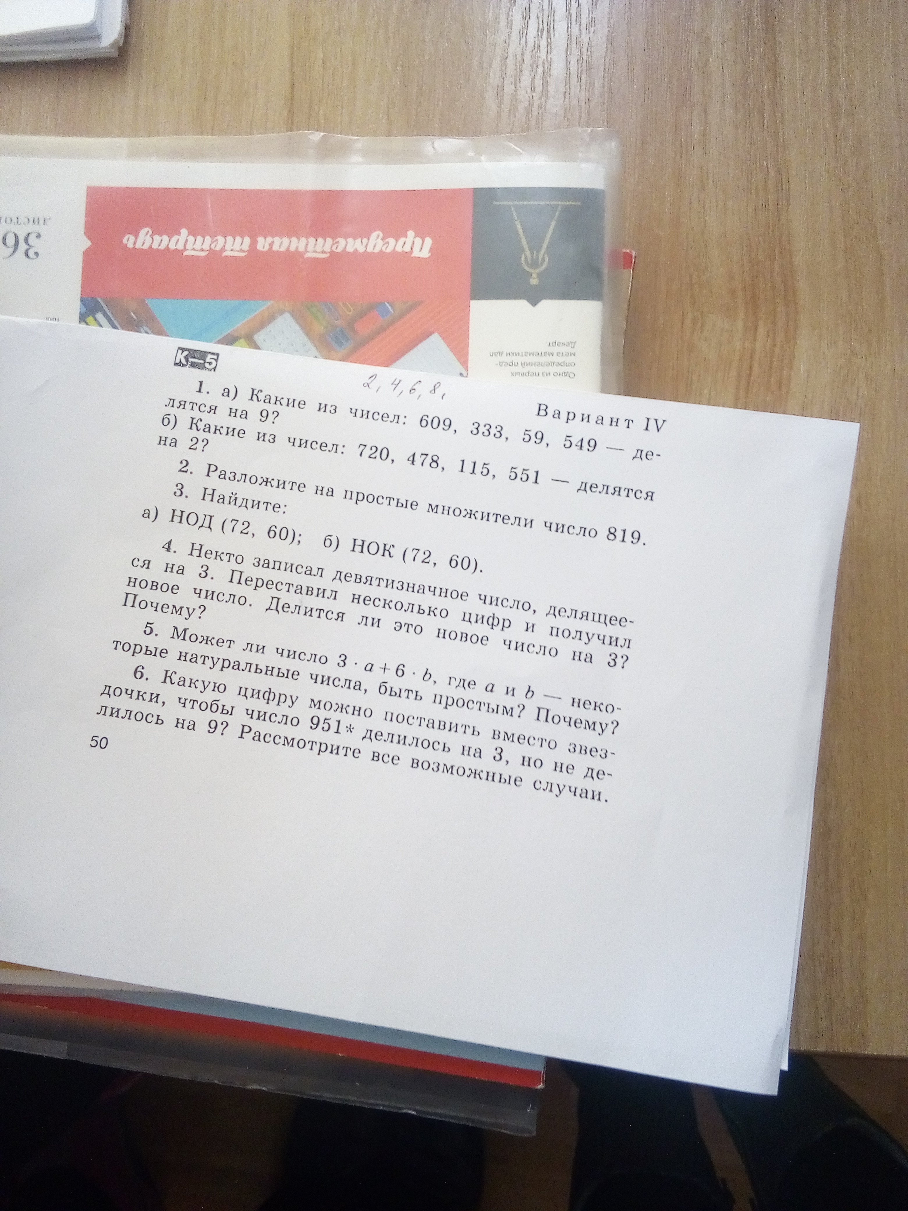 5. Нет так как и 3а будет делится на 3 и 6в будет делится на 3, а если каждое слагаемое делится на одно и то же число то на него делится и их сумма.