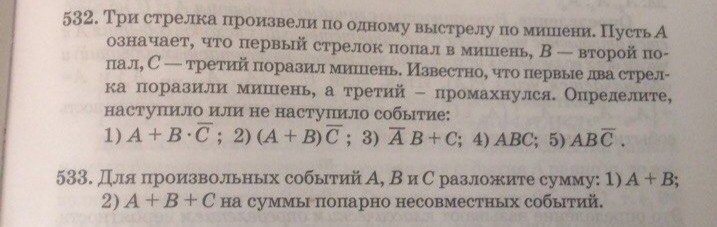 В вопросе читаем:" И первый А попал И второй В попал И третий С НЕпопал"
