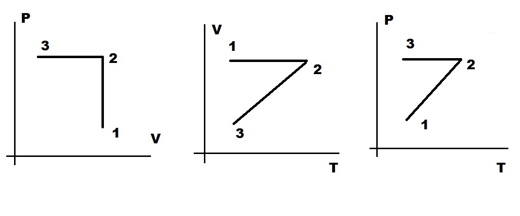 Изобразите эти процессы в осях на графике (P;V) (P;T) и (V;T)