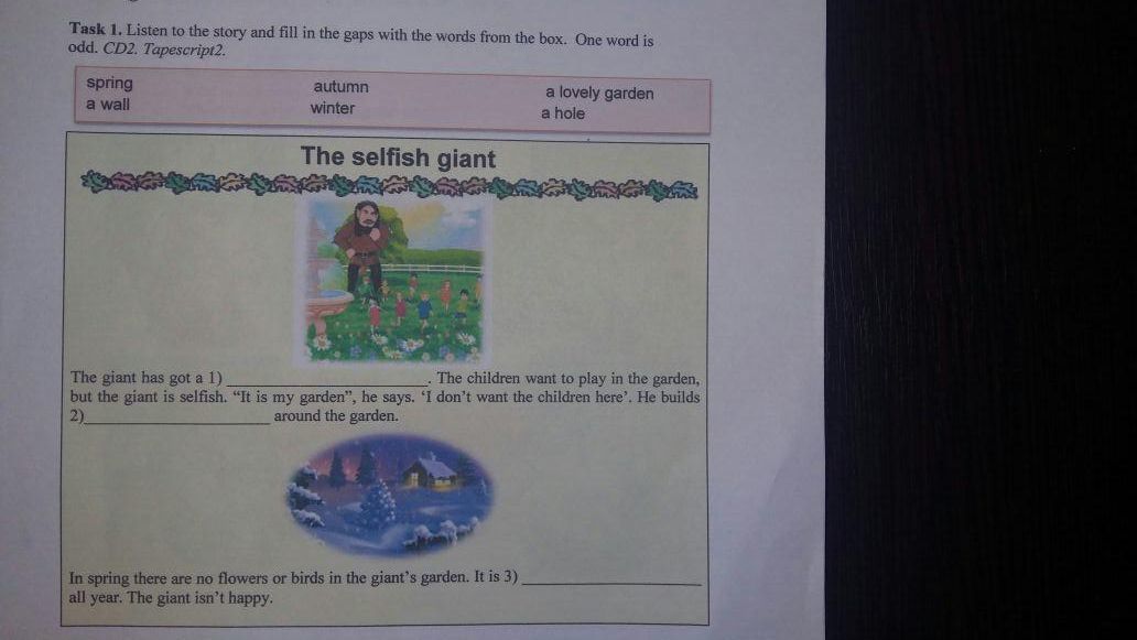 Весной в саду гиганта нет цветов и птиц. Весь год идет зима. Гигант расстроен.